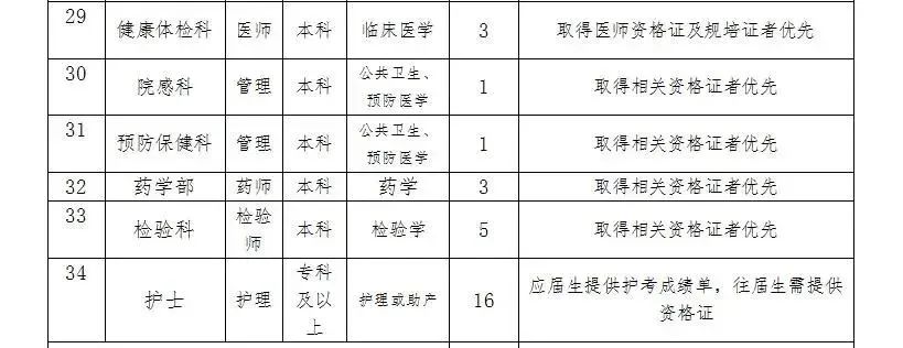6.醫(yī)師年齡不超過40周歲,取得中高級(jí)職稱職稱者年齡可放寬至45歲,護(hù)士年齡不超過30周歲;博士、碩士學(xué)歷者年齡不超過45周歲,取得高級(jí)職稱者年齡可放寬至50歲。