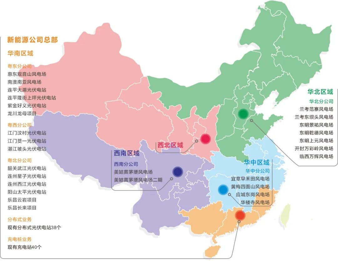 廣州發(fā)展新能源股份有限公司是廣州發(fā)展的全資子公司,主營業(yè)務(wù)涵蓋光伏發(fā)電、風(fēng)力發(fā)電、汽車充電、儲能等新能源項目。目前,屬下省內(nèi)外區(qū)域分公司6家、員工人數(shù)超520人、裝機規(guī)模超200萬千瓦、總資產(chǎn)超170億元。