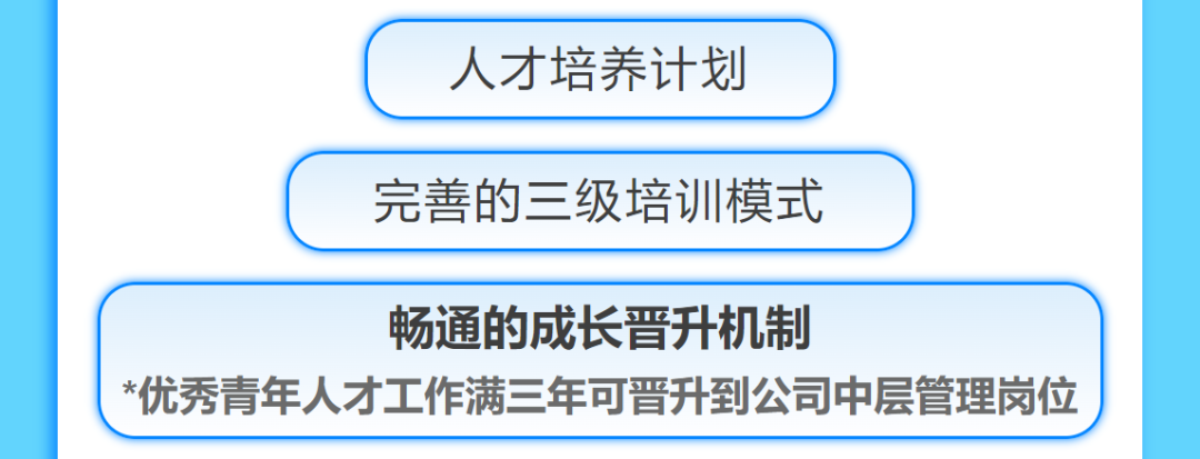 遴選部分綜合素質(zhì)突出的應(yīng)屆畢業(yè)生作為儲備干部培養(yǎng),基本要求為大學(xué)本科及以上學(xué)歷,電氣、新能源、市場營銷、企業(yè)管理、財務(wù)等專業(yè)。通過基層實踐、崗位輪訓(xùn)、參與重大項目等方式進行針對性培養(yǎng),在3-5年培養(yǎng)成為公司中層及以上管理干部。