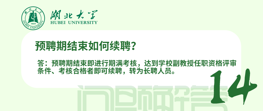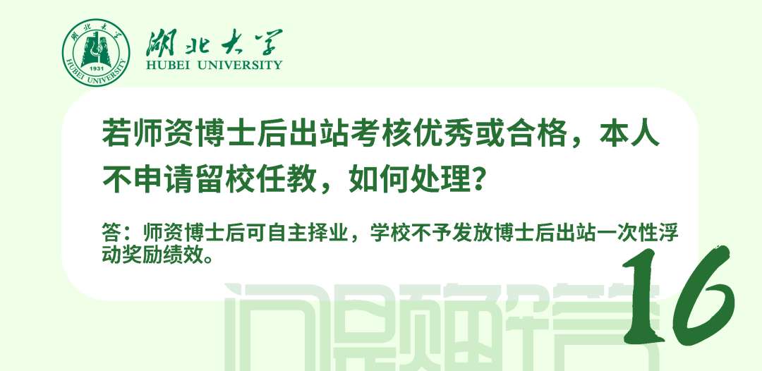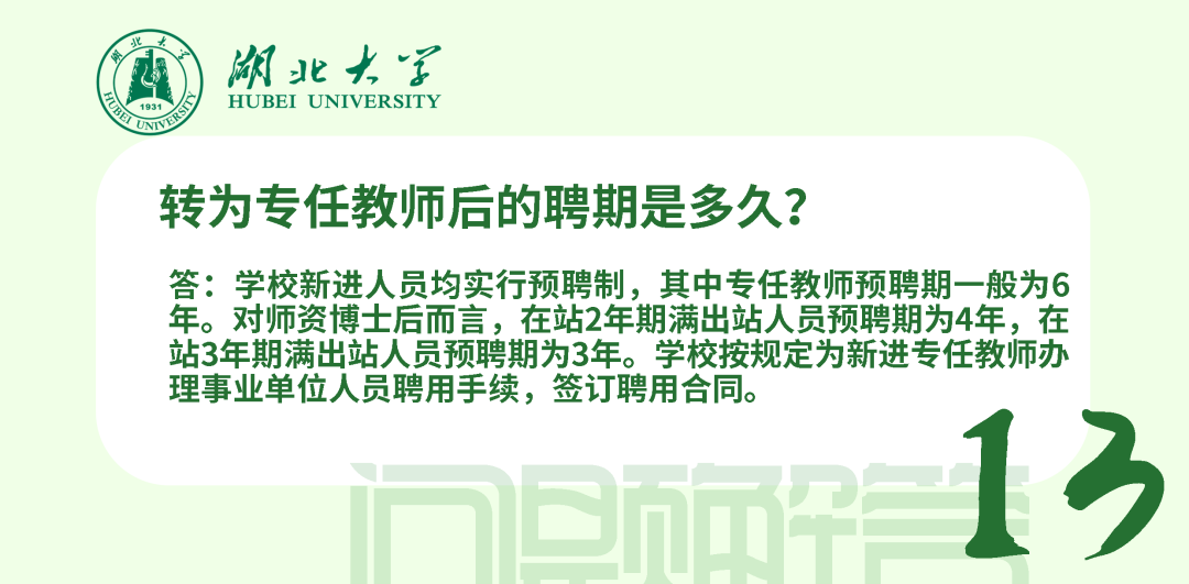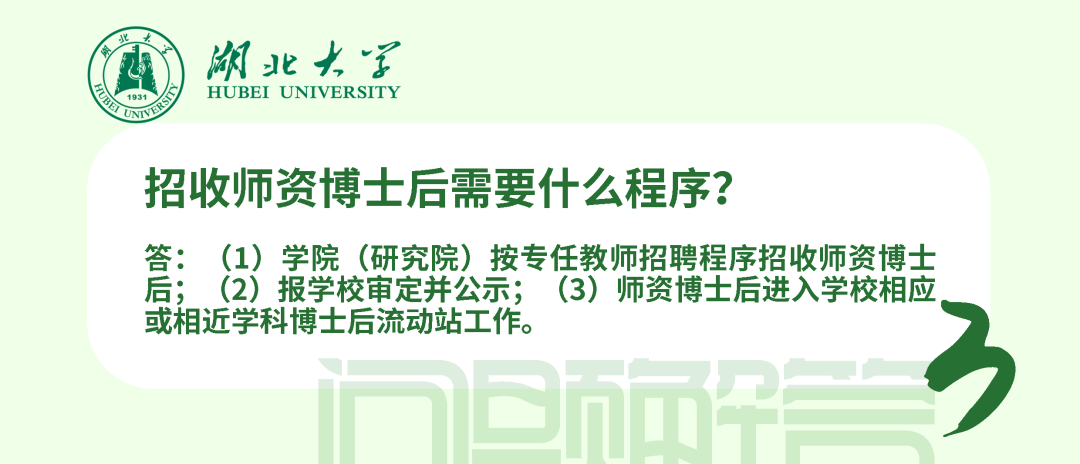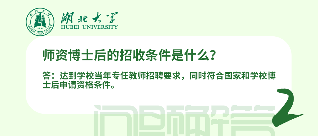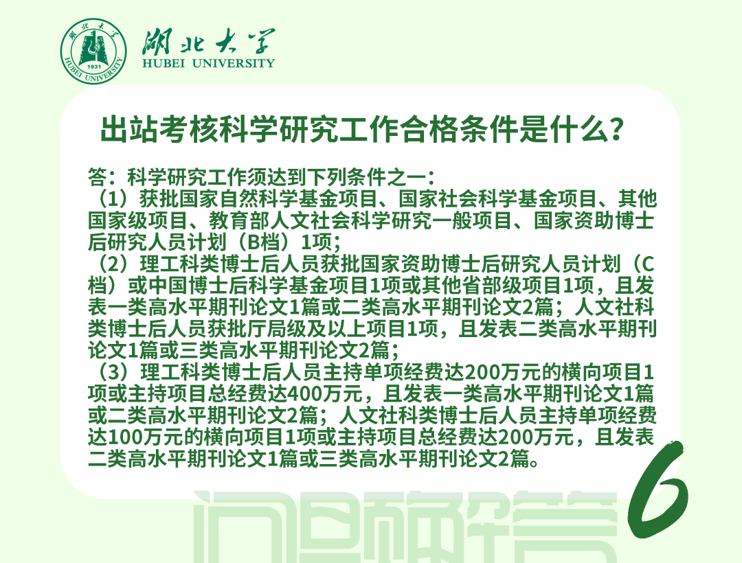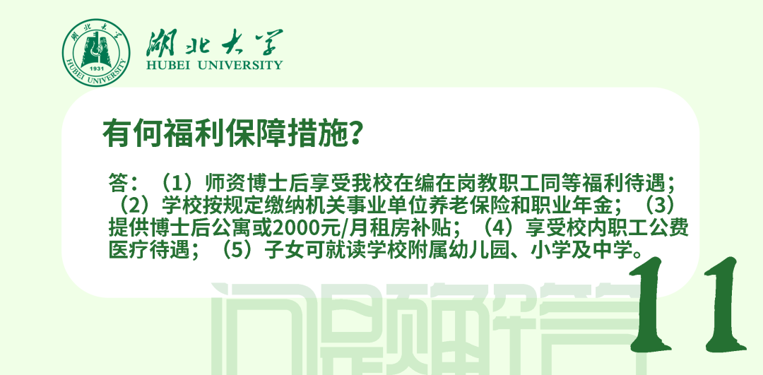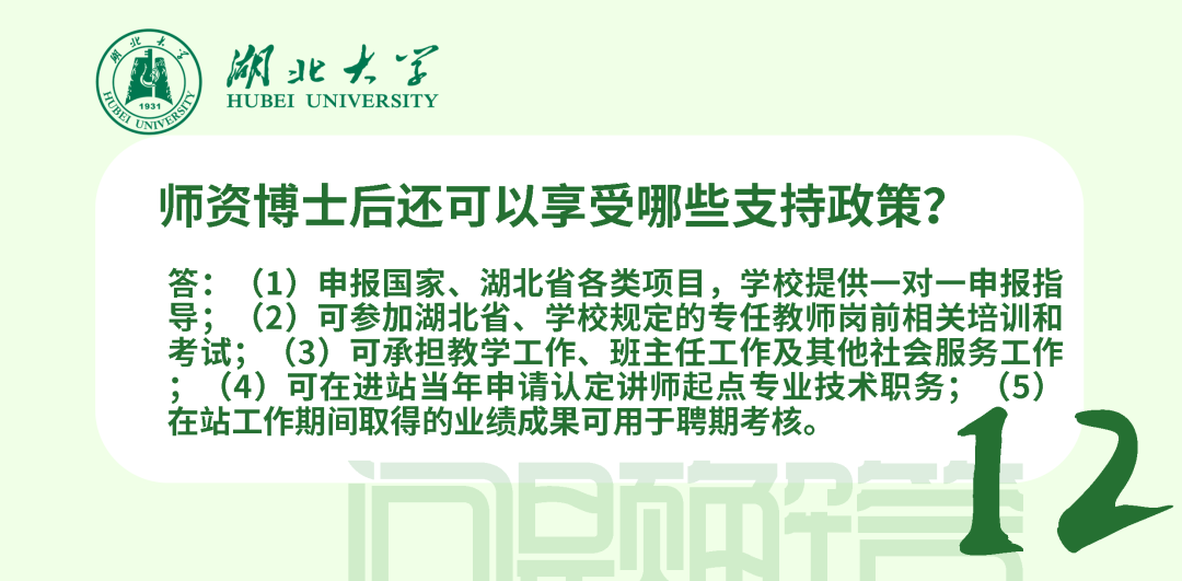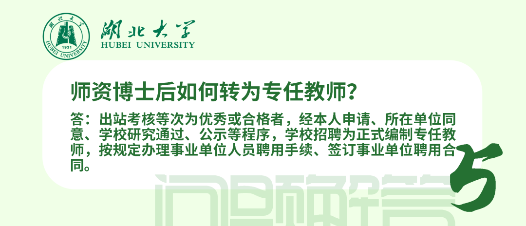 在站期間人事管理、薪酬待遇和考核均按照學(xué)校現(xiàn)行博士后管理辦法執(zhí)行,簽訂《湖北大學(xué)師資博士后聘用合同》。師資博士后可參加湖北省、學(xué)校規(guī)定的專任教師崗前相關(guān)培訓(xùn)和考試;可承擔(dān)教學(xué)工作、班主任工作及其他社會服務(wù)工作;可在進(jìn)站當(dāng)年申請認(rèn)定講師起點(diǎn)專業(yè)技術(shù)職務(wù);在站工作年限計(jì)入專任教師6年預(yù)聘期,期間取得的業(yè)績成果可作為預(yù)聘期考核條件使用。